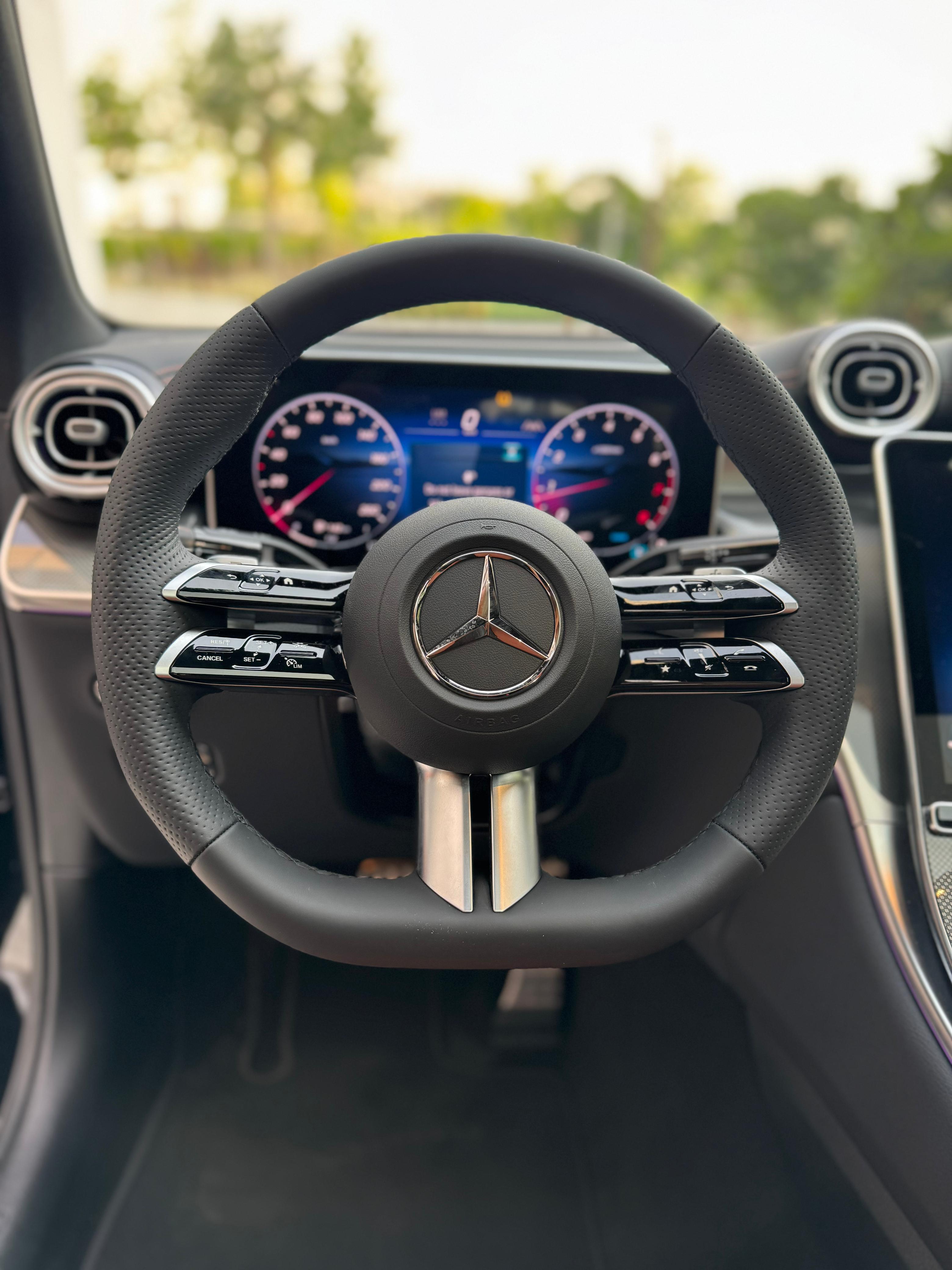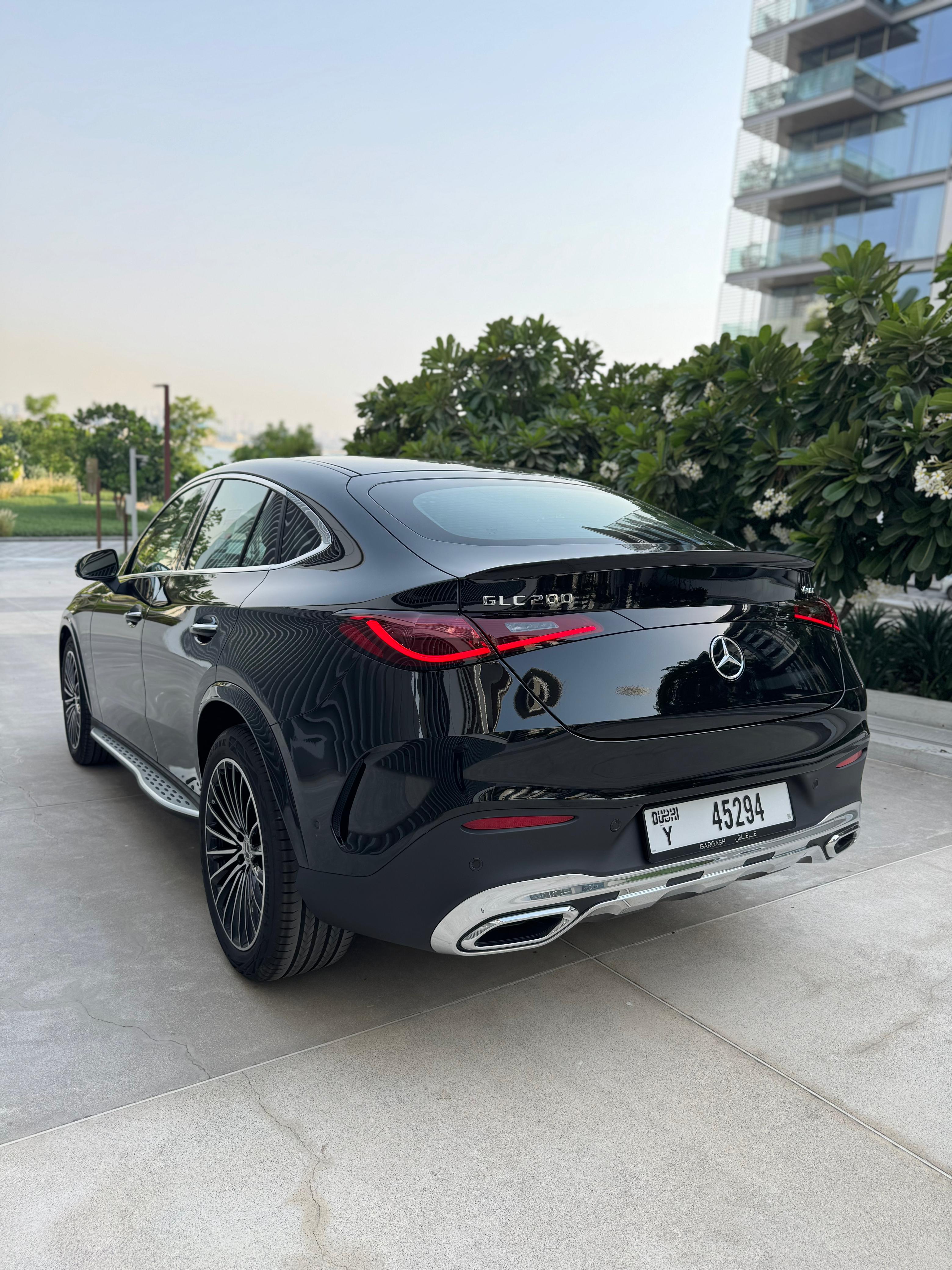 Mercedes-Benz GLC 200 – Model Year 2025 Doors: 4 doors Passengers: Seats up to 5 occupants Luggage Capacity: Fits up to 4 medium-sized suitcases Key Features: 3D Surround View Camera Front Seats with Memory Function Parking Assist System Digital Head-Up Display (HUD) Panoramic Sunroof Front and Rear Parking Sensors Steering Assist Technology Tinted Windows Paddle Shifters (Tiptronic Gear System) Electrically Adjustable Seats