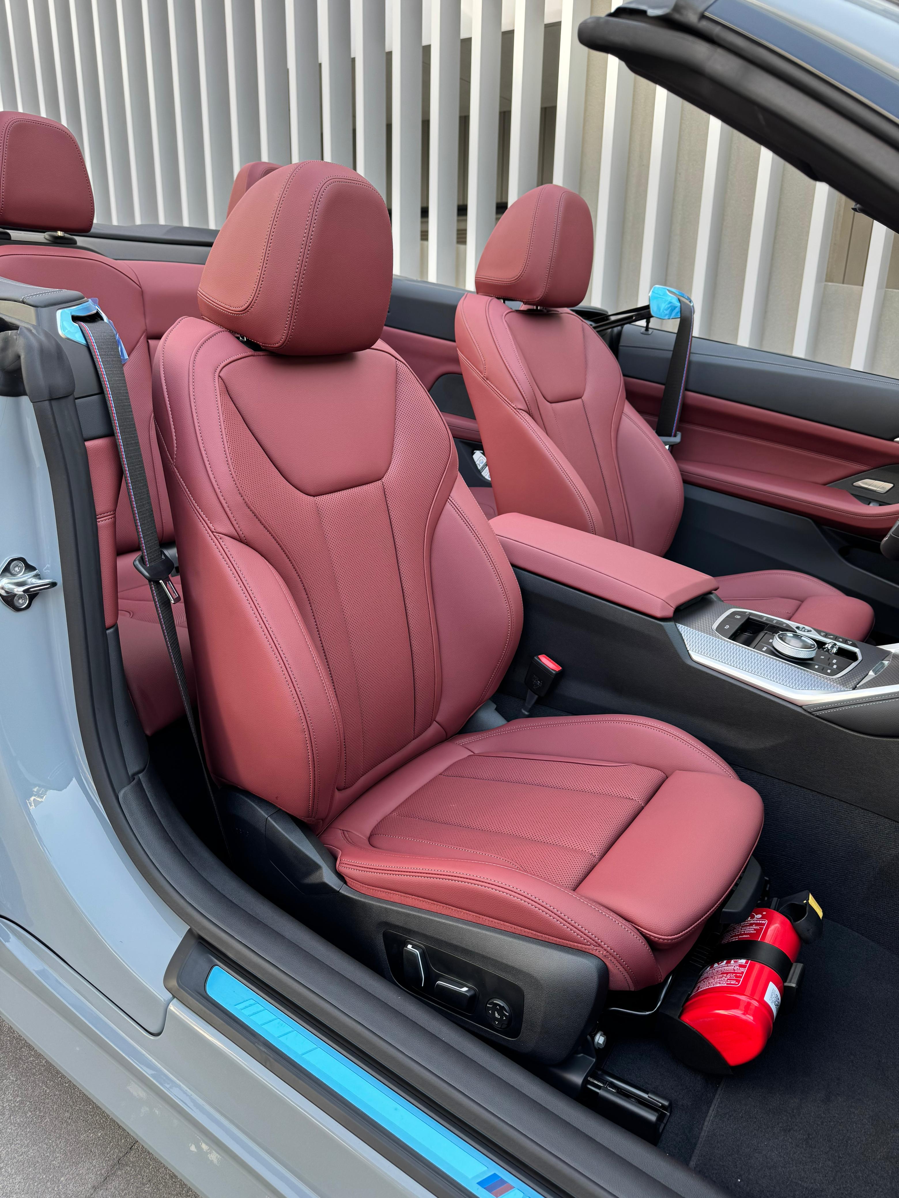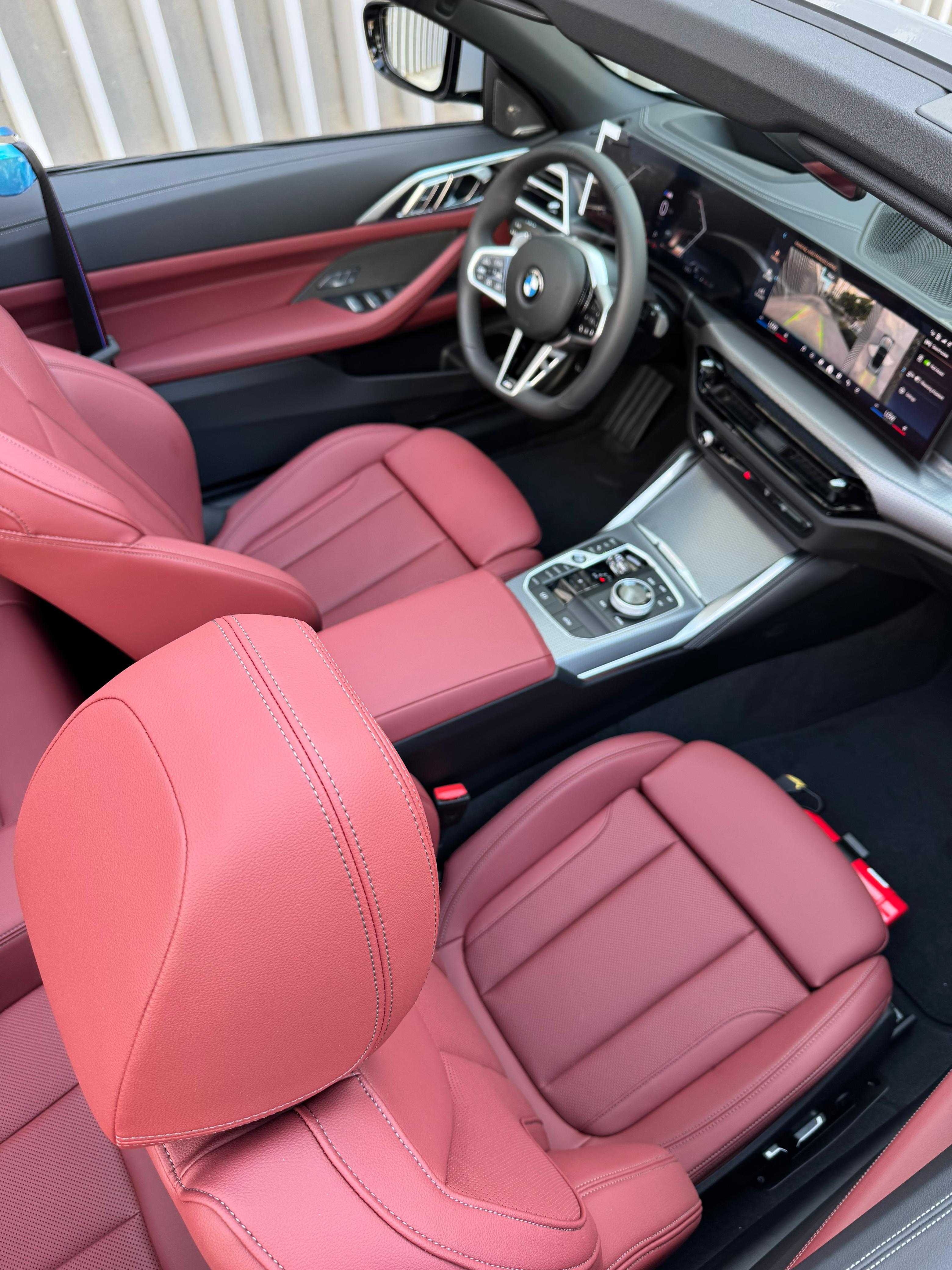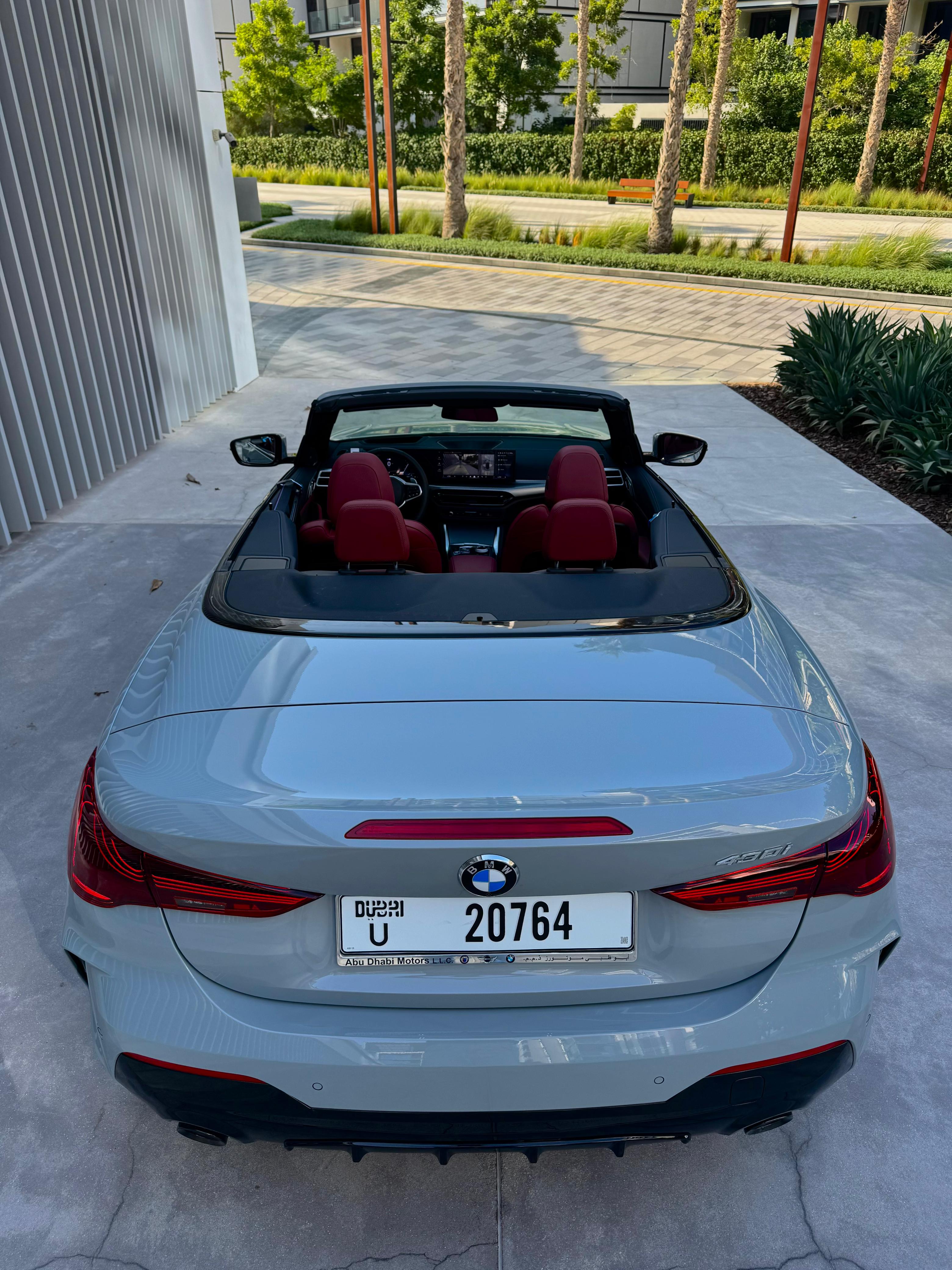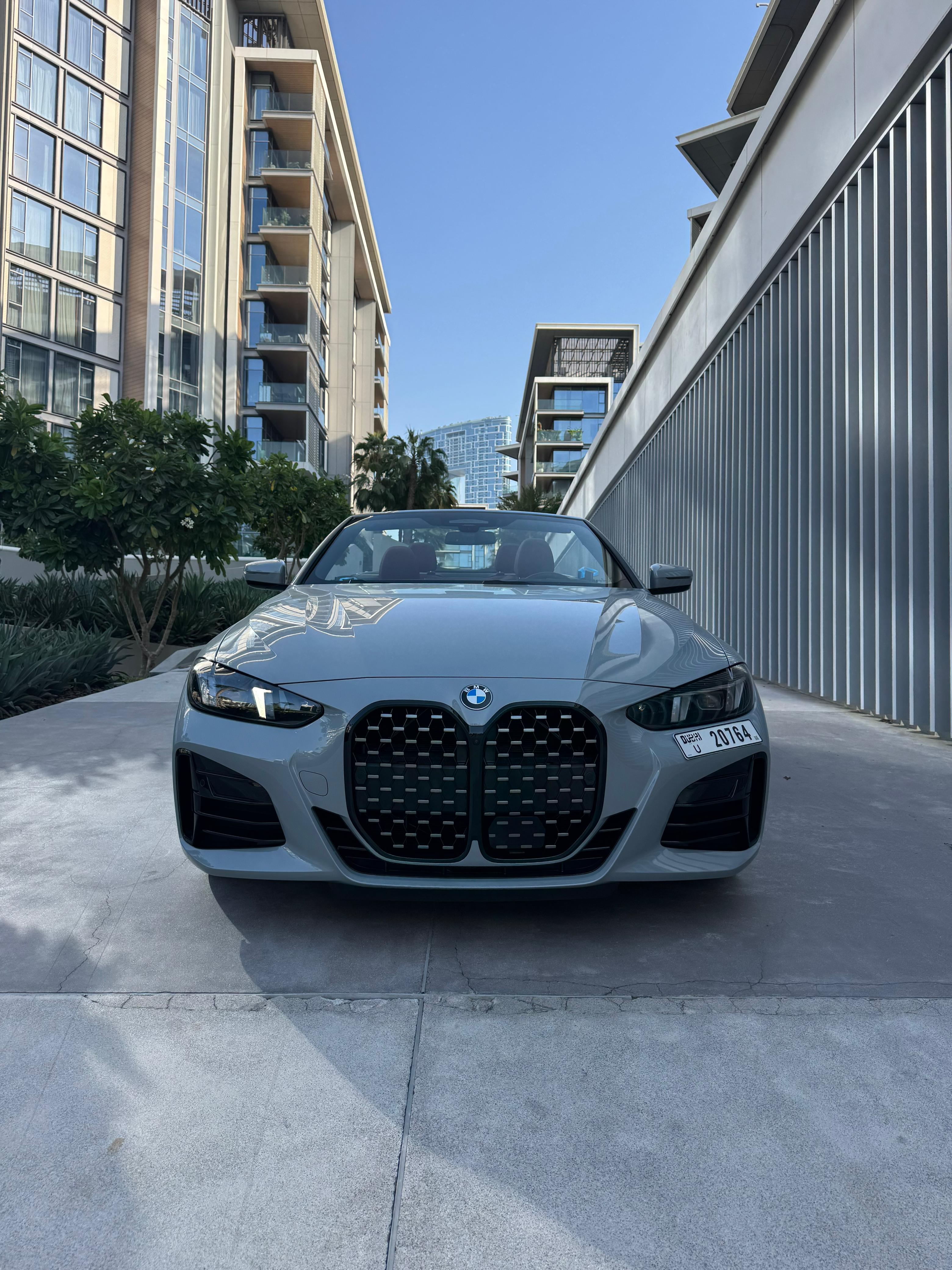 BMW 430i Convertible M-Kit 2025 Model Year: 2025 Body Type: Convertible Doors: 2 Seating Capacity: 4 passengers Luggage Capacity: 1 medium-sized bag Key Features: Surround View Camera Memory Front Seats Parking Assist Digital Head-Up Display (HUD) Temperature-Controlled Seats (Heated/Cooled) Built-in GPS Navigation Steering Assist Tinted Windows Paddle Shifters (Triptronic) LCD Screens Why Rent the BMW 430i Convertible M-Kit? The BMW 430i Convertible M-Kit combines sporty performance with premium comfort and cutting-edge technology. Whether you're seeking an exhilarating open-top driving experience or simply want to arrive in style, this luxury convertible delivers on all fronts.