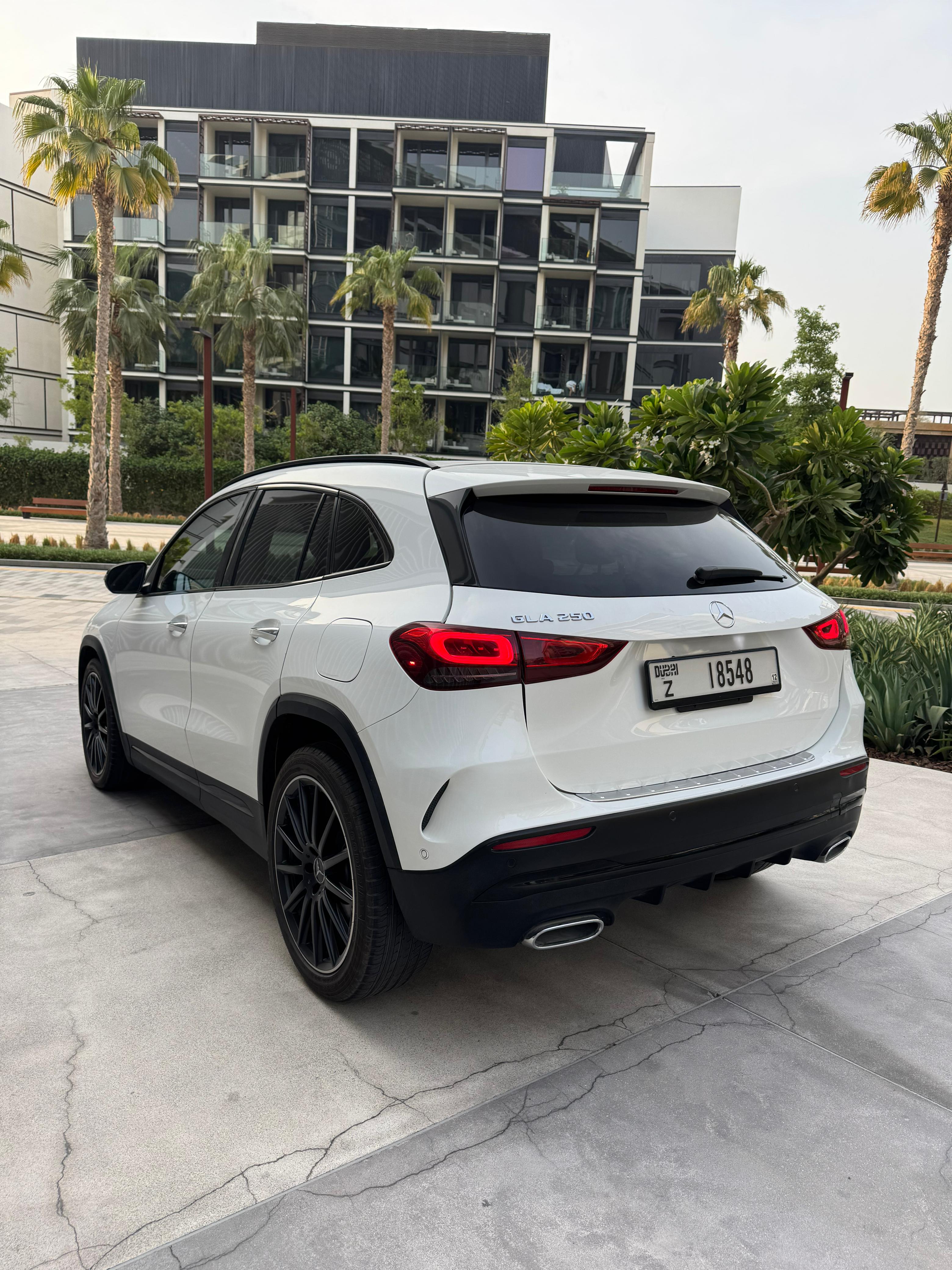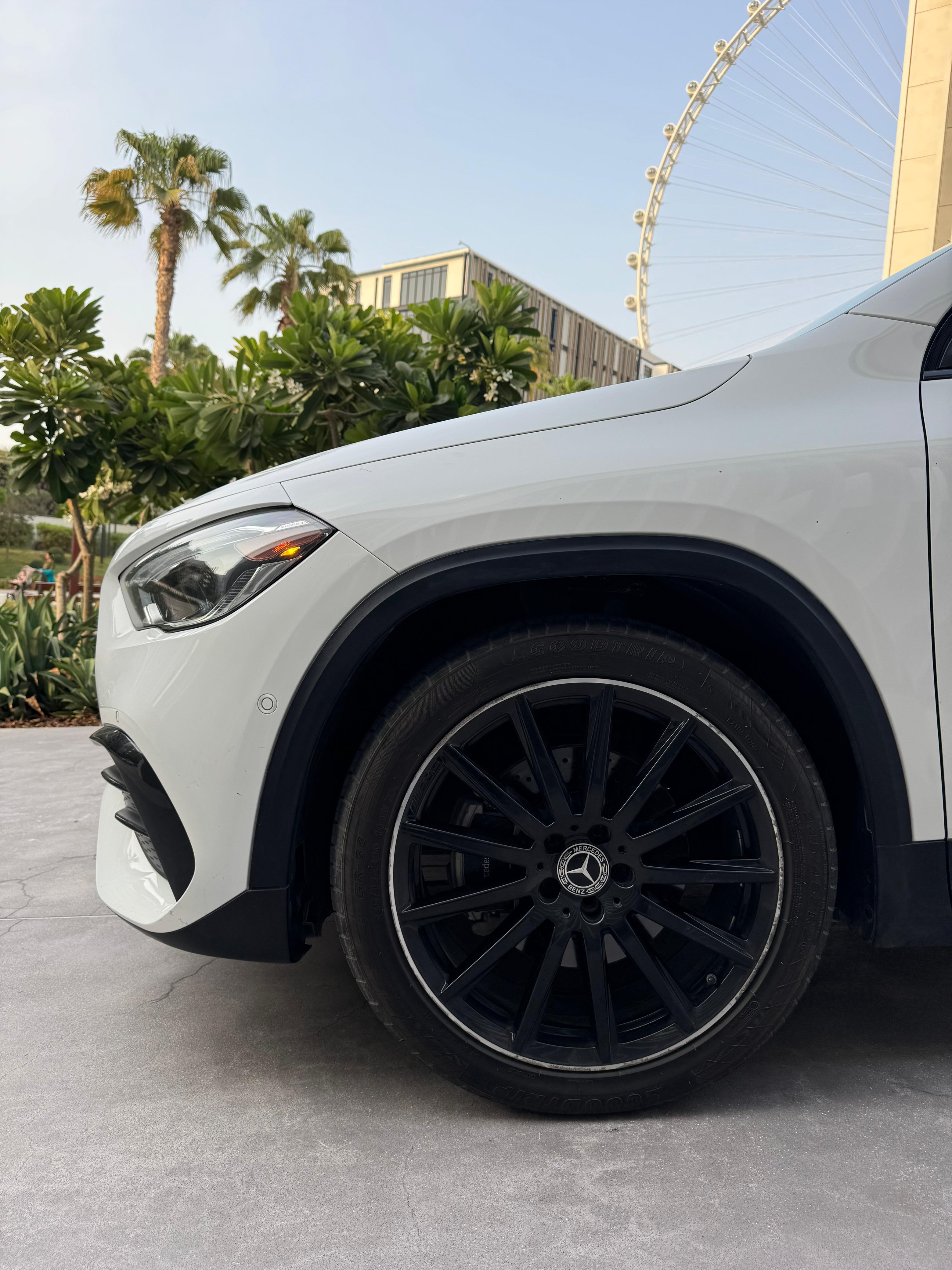 🚙 2021 Mercedes‑Benz GLA 250 (GLA 250 4MATIC) The GLA 250 is part of the second-generation GLA lineup (H247), which debuted around 2020–2021 as a compact luxury SUV offering sporty styling and premium comfort Wikipedia +15 Wikipedia +15 WapCar +15 ✅ Powertrain & Performance Engine: 2.0‑liter turbocharged inline‑4 (M260 DE20 AL) Output: 165 kW (224 PS / ~221 hp) and 350 Nm torque, delivered at ~1,800–4,000 rpm CarPrices +9 Wikipedia +9 Wikipedia +9 Acceleration: Front‑wheel drive version: ~6.9 s from 0–100 km/h AWD (4MATIC) version: ~6.7 s to 100 km/h; top speed ~250 km/h (155 mph) Wikipedia Transmission: 8‑speed dual‑clutch automatic (8G‑DCT) Drivetrain: Standard 4MATIC all‑wheel drive on GLA 250 AWD variant; FWD on base GLA 250 frankyehtravels.com +15 Wikipedia +15 Engine in Detail +15 🔍 Fuel Economy & Emissions Combined fuel consumption: approximately 7.2–7.4 L/100 km (~34–32 mpg) under WLTP testing CO₂ emissions: around 152 g/km Wikipedia Wikipedia Regional estimate: ~8.7 L/100 km (≈9.8 city /7.2 highway L/100 km) in Canadian testing Le Guide de l'auto 📏 Dimensions & Cargo Length × Width × Height: ~4,410 mm × 1,834 mm × 1,611 mm Wheelbase: ~2,729 mm Trunk capacity: around 435 L (expandable to ~1,430 L with folded rear seats) Le Guide de l'auto +1 🛋️ Interior & Tech Features Elevated interior materials—brushed aluminum and optionally leather upholstery Rear legroom increased (up to ~5 inches more) in 2021 update Autoweb theautomotivereview.com MBUX infotainment system: Standard: dual 7.0″ display screens (instrument cluster + infotainment) Premium Package (optional): upgraded dual 10.3″ widescreens Includes steering‑wheel touchpads, central touchpad, and LINGUATRONIC voice control (“Hey Mercedes”) for natural‑language commands like “I’m cold” etc. theautomotivereview.com +3 frankyehtravels.com +3 Autoweb +3 theautomotivereview.com Optional advanced features: head‑up display, panoramic sunroof, heated/ventilated seats, wireless phone charging, blind‑spot assist, adaptive cruise, keyless‑go, and surround‑view camera system (via optional packages) Le Guide de l'auto +1 🛡️ Safety & Driving Aids Standard safety gear: multiple airbags, ABS, stability control, hill‑start assist, collision warning, pedestrian active bonnet Optional assistance: lane‑change assistant, traffic‑jam assistant, evasive steering assistant, intersection/cross‑traffic warning — available with driver assistance packages