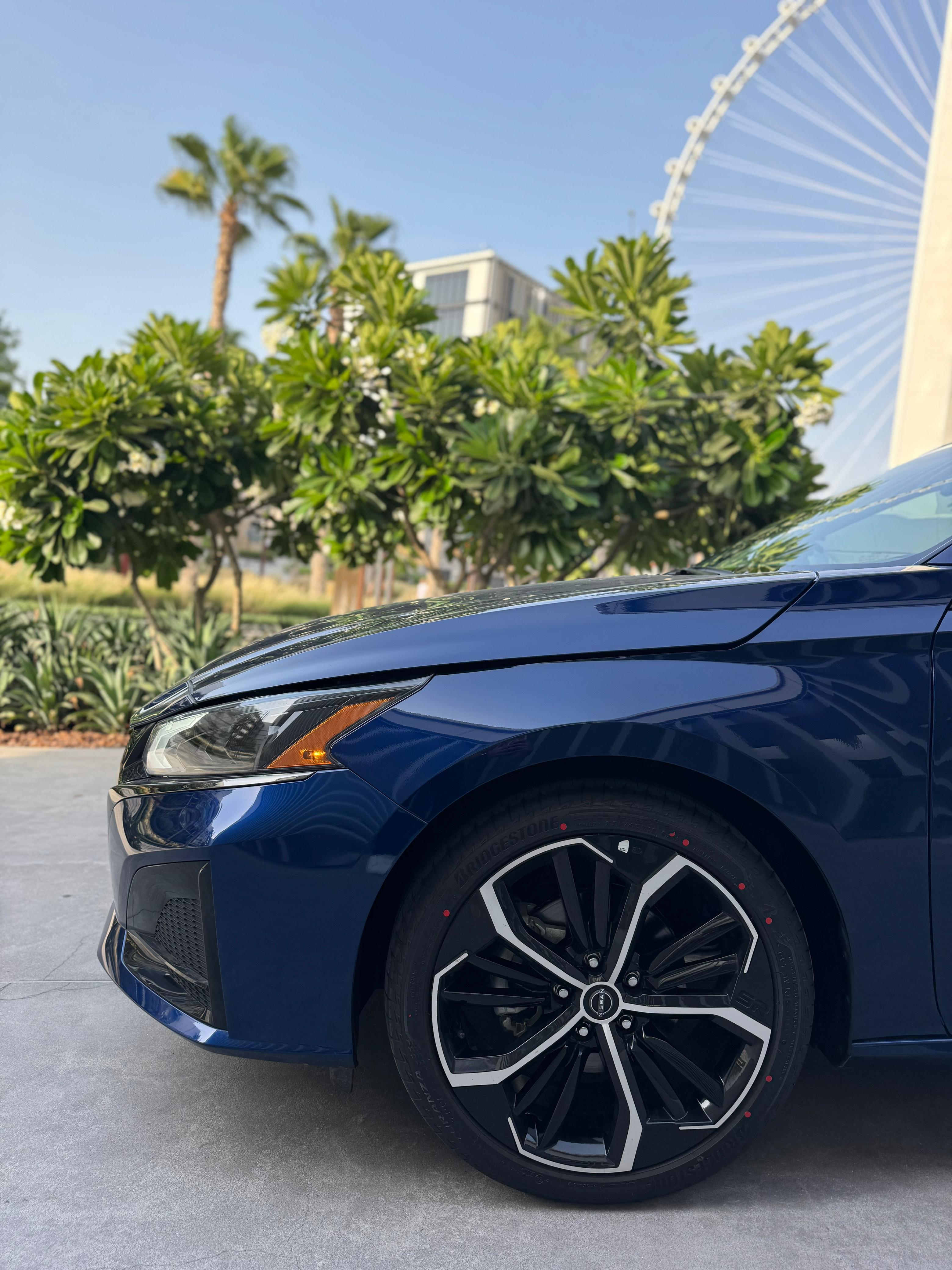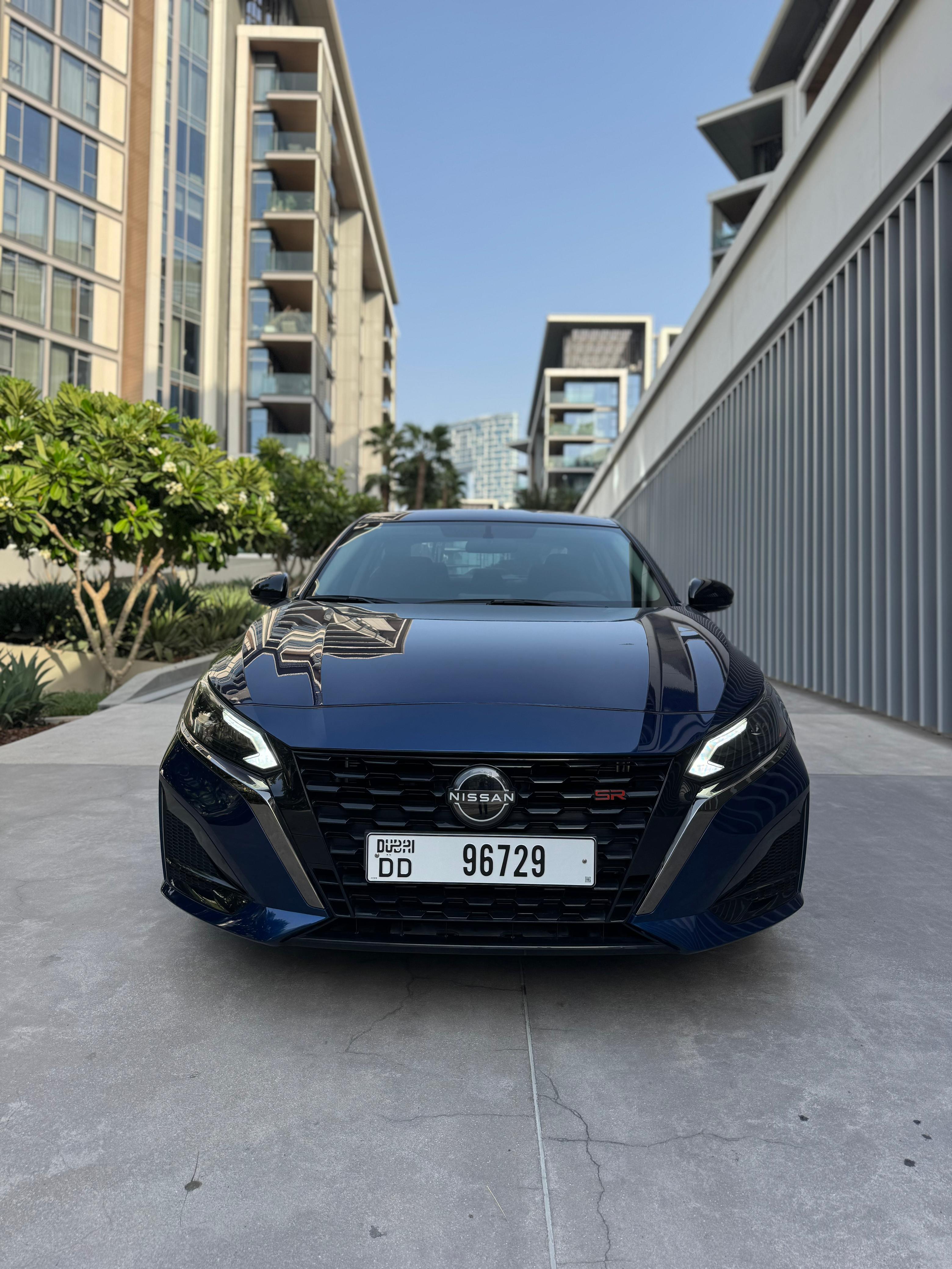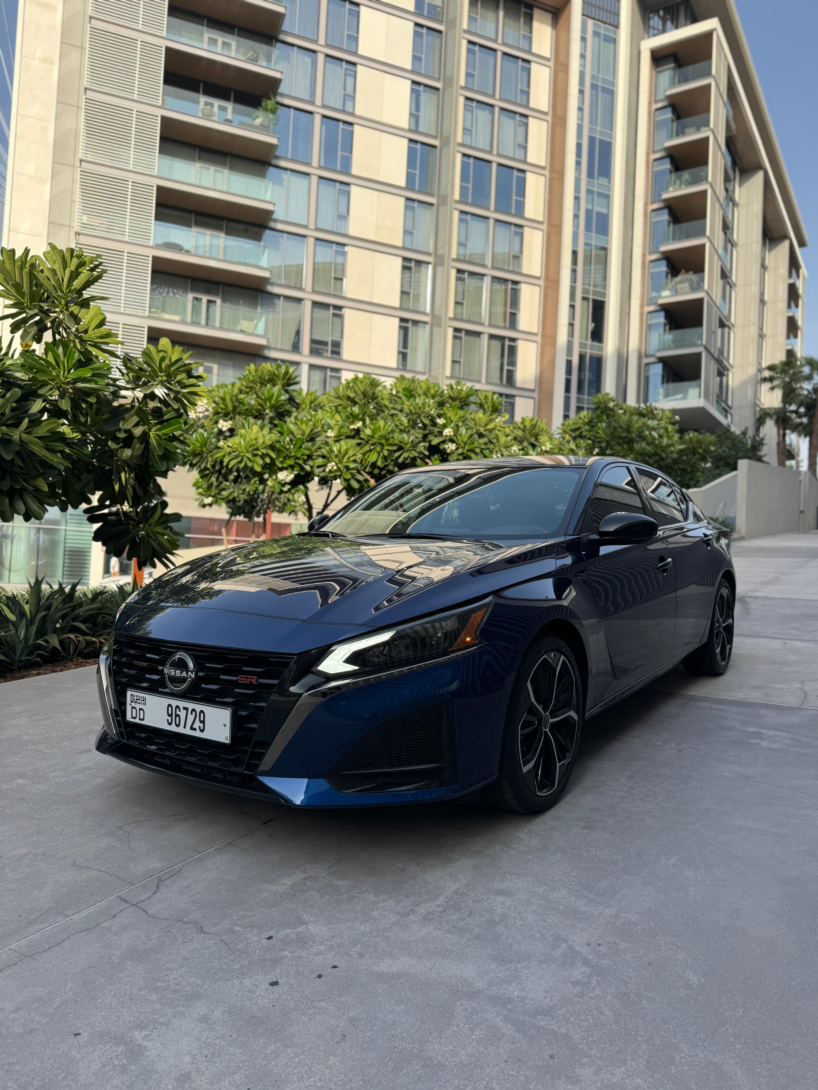 Nissan Altima 2023 Model Year: 2023 Key Specifications: Front Airbags Rear Air Conditioning Fabric Seats Power Door Locks Foldable Armrest FM Radio Why Rent the Nissan Altima? The 2023 Nissan Altima is a practical and stylish midsize sedan featuring four doors and seating for up to five passengers. With its recent facelift, this model boasts a refreshed front design, new wheel options, and updated interior trims. Under the hood, the Altima is available with either a 2.5-liter 4-cylinder engine or a 3.5-liter V6, both paired with a CVT automatic transmission as standard. However, most models available in the GCC region now come with the more efficient 2.5-liter engine. The cabin features a beige interior, available in fabric or optional leather upholstery. Entertainment options include an available Bose premium audio system with nine speakers, Bluetooth connectivity, USB port with iPod support, and an optional 4.3-inch color display. Higher trims may also include a 6.5-inch VGA navigation system, DVD player, and rearview camera. Base models offer 16-inch steel wheels with hubcaps, keyless entry with push-button start, and manually adjustable seats. Higher trims include 16-inch or 17-inch alloy wheels, power driver’s seat, sunroof, spoiler, and additional safety features like stability control, side-curtain airbags, and tire pressure monitoring. Whether you're looking for efficiency, comfort, or modern tech features, the Nissan Altima 2023 delivers a balanced driving experience ideal for daily commutes or weekend getaways.