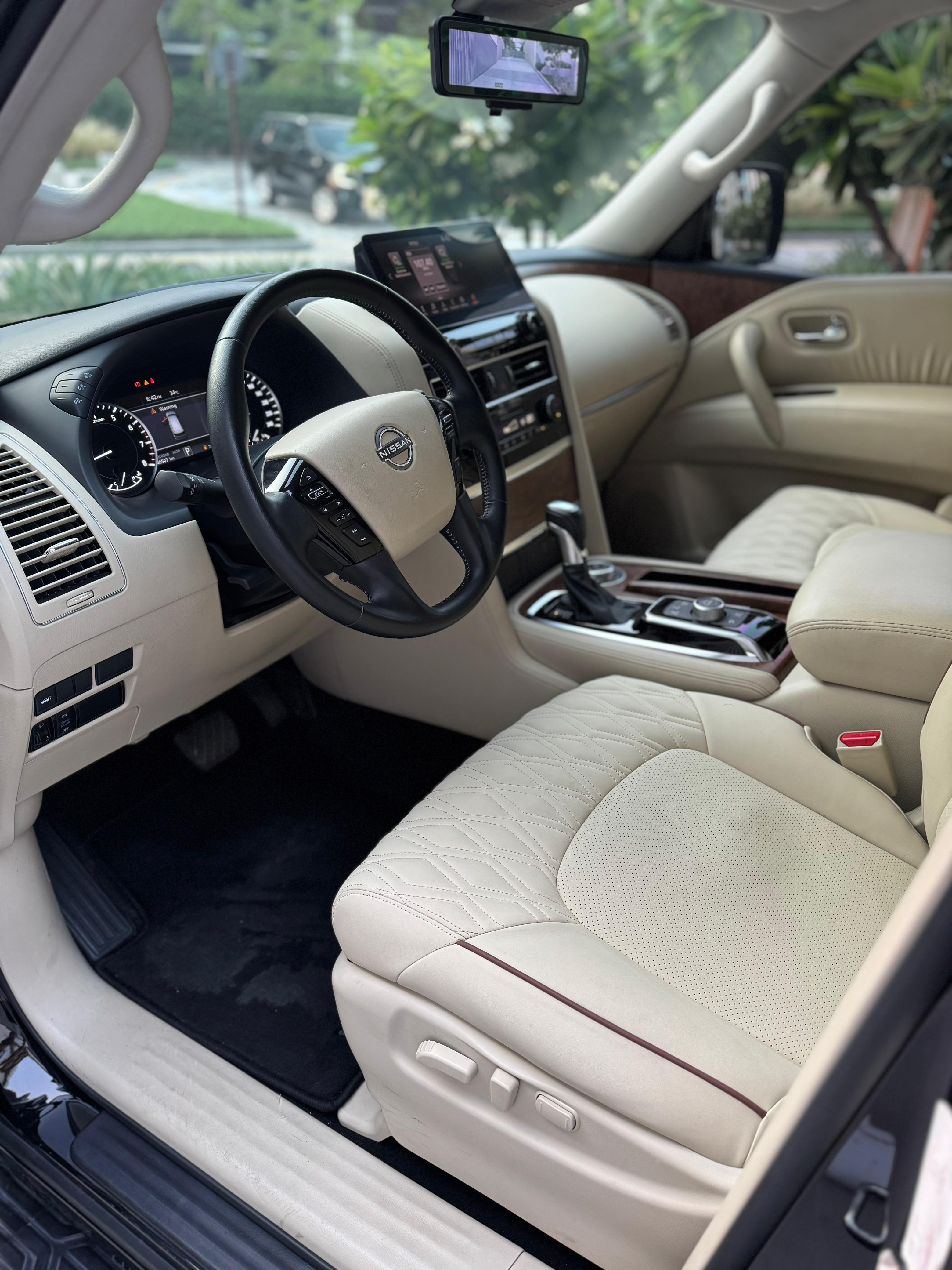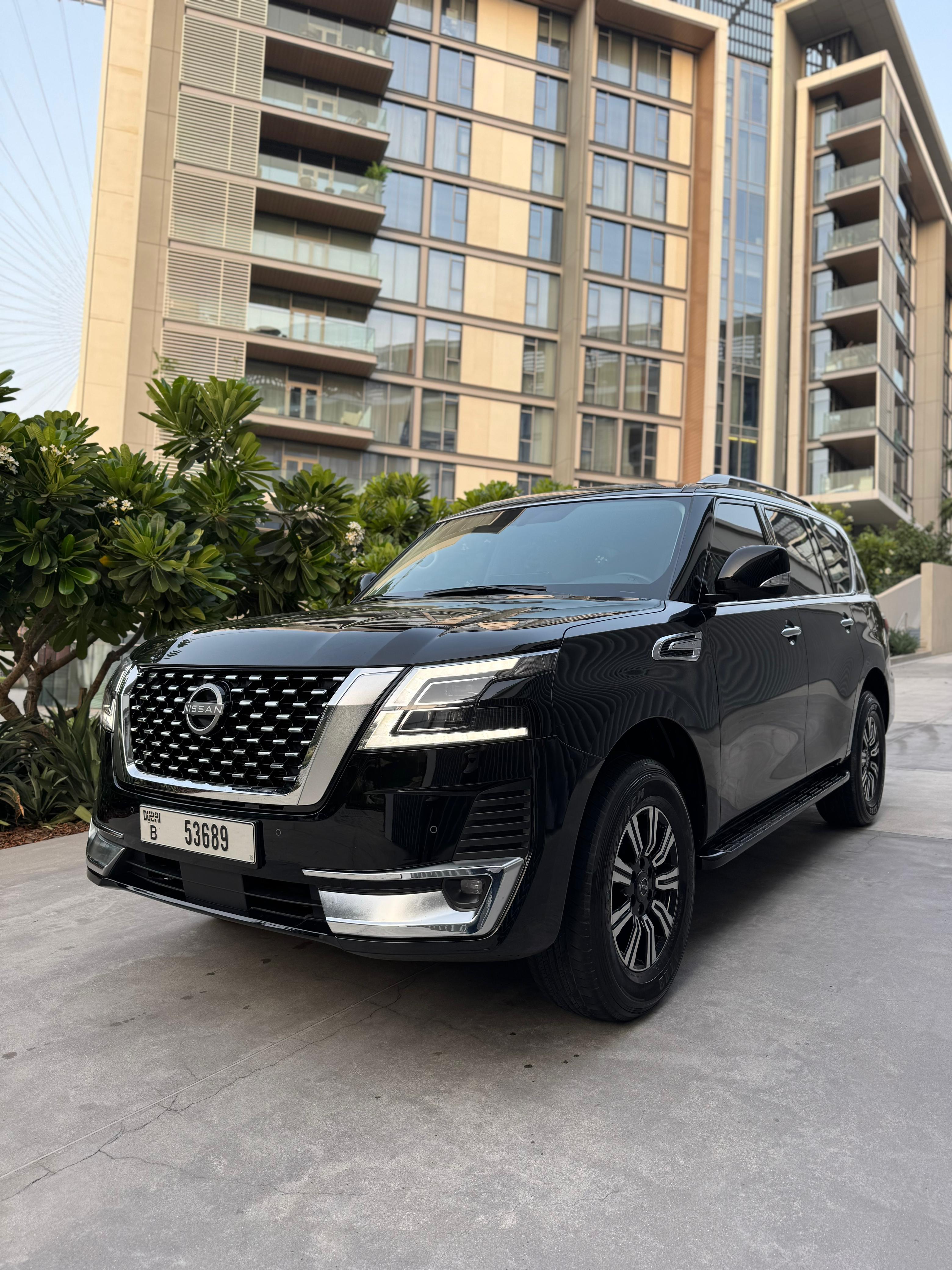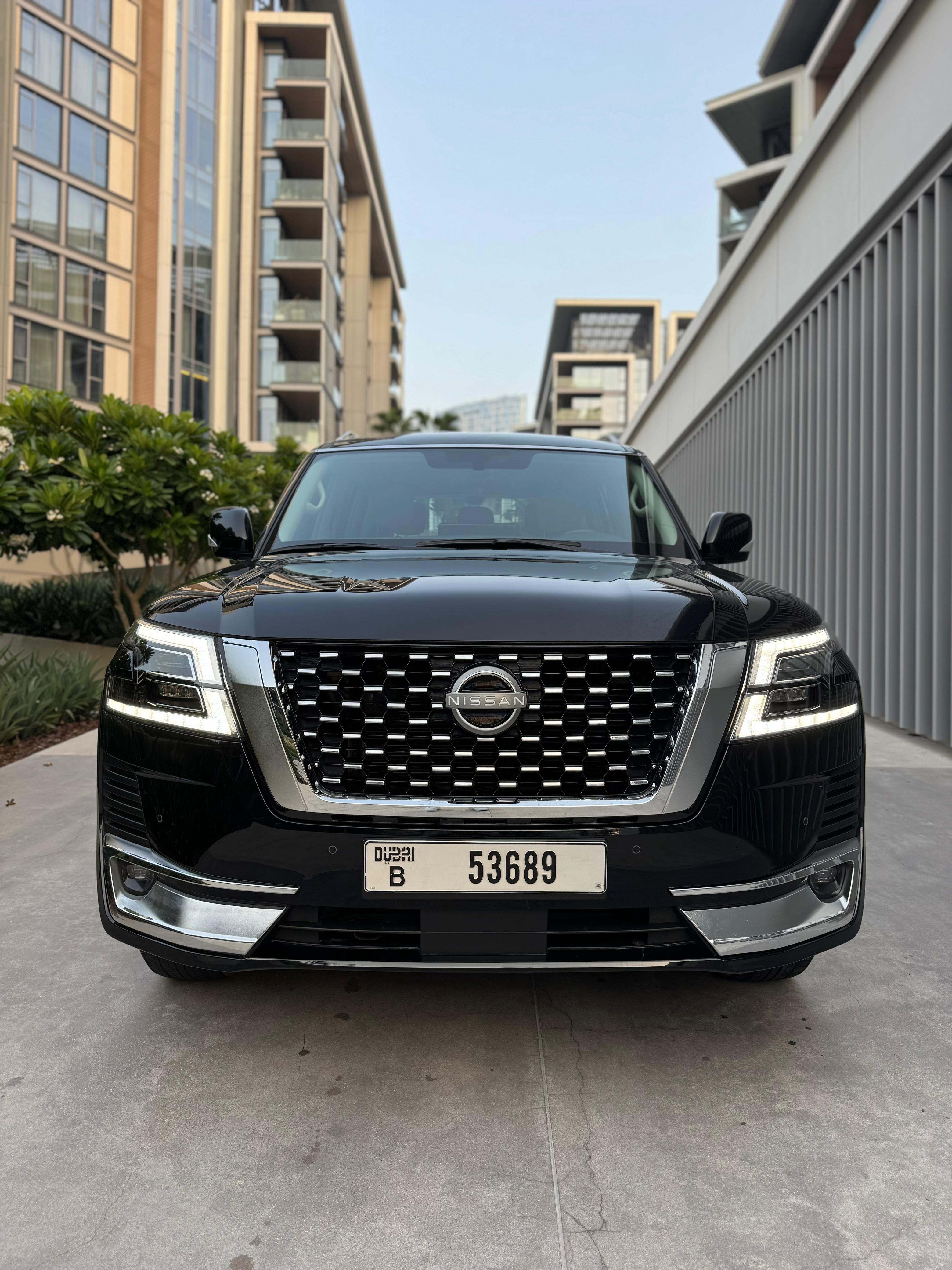 Nissan Patrol Titanium 2024 Model Year: 2024 Key Features: 3D Surround View Camera Memory Front Seats Parking Assist Digital Head-Up Display (HUD) Temperature-Controlled Seats Built-in GPS Navigation Panoramic Sunroof Front and Rear Parking Sensors Steering Assist Tinted Windows Why Rent the Nissan Patrol Titanium? The 2024 Nissan Patrol Titanium is a premium full-size SUV offered by Easy Rent Car Rental. This 5-door vehicle comfortably seats up to 7 passengers and accommodates 5 medium-sized suitcases. It combines powerful performance with high-end features, making it an excellent choice for family trips, business travel, or off-road adventures — all in refined comfort and style. Equipped with advanced driver-assist systems and luxurious amenities, the Patrol Titanium ensures a smooth, safe, and enjoyable driving experience.