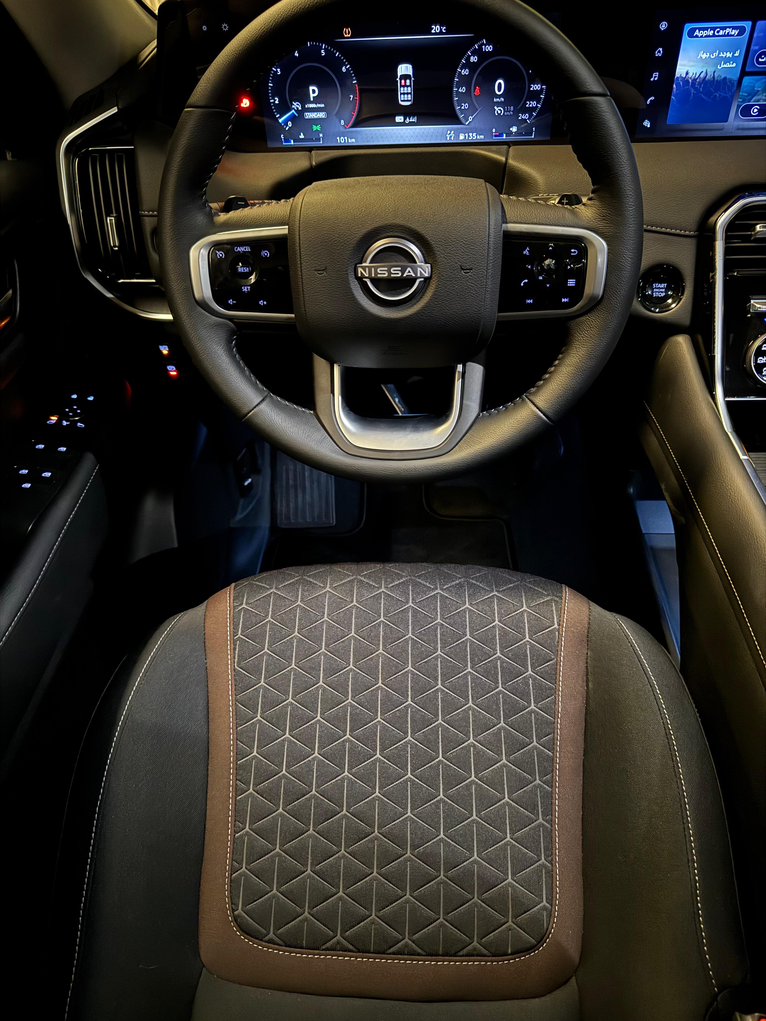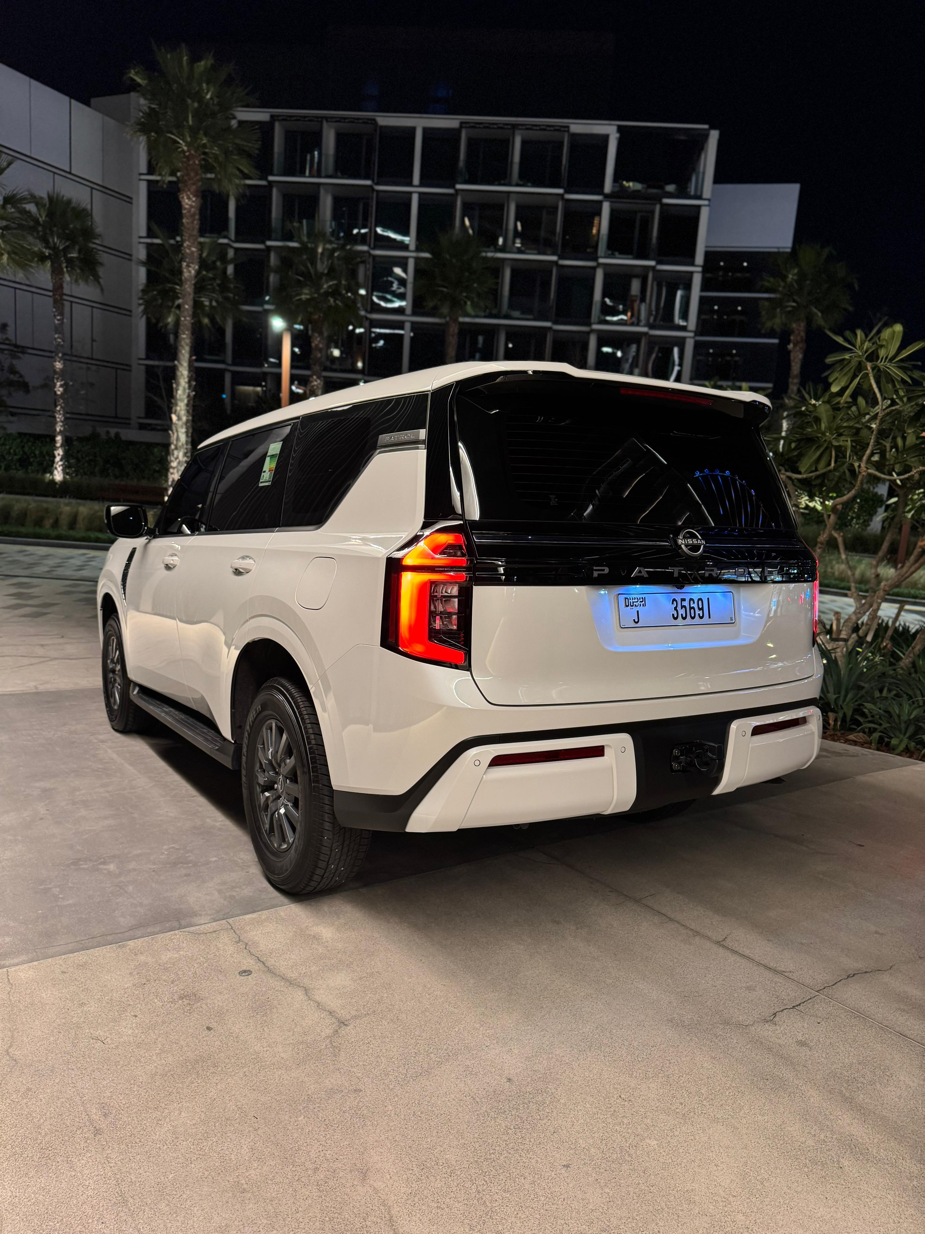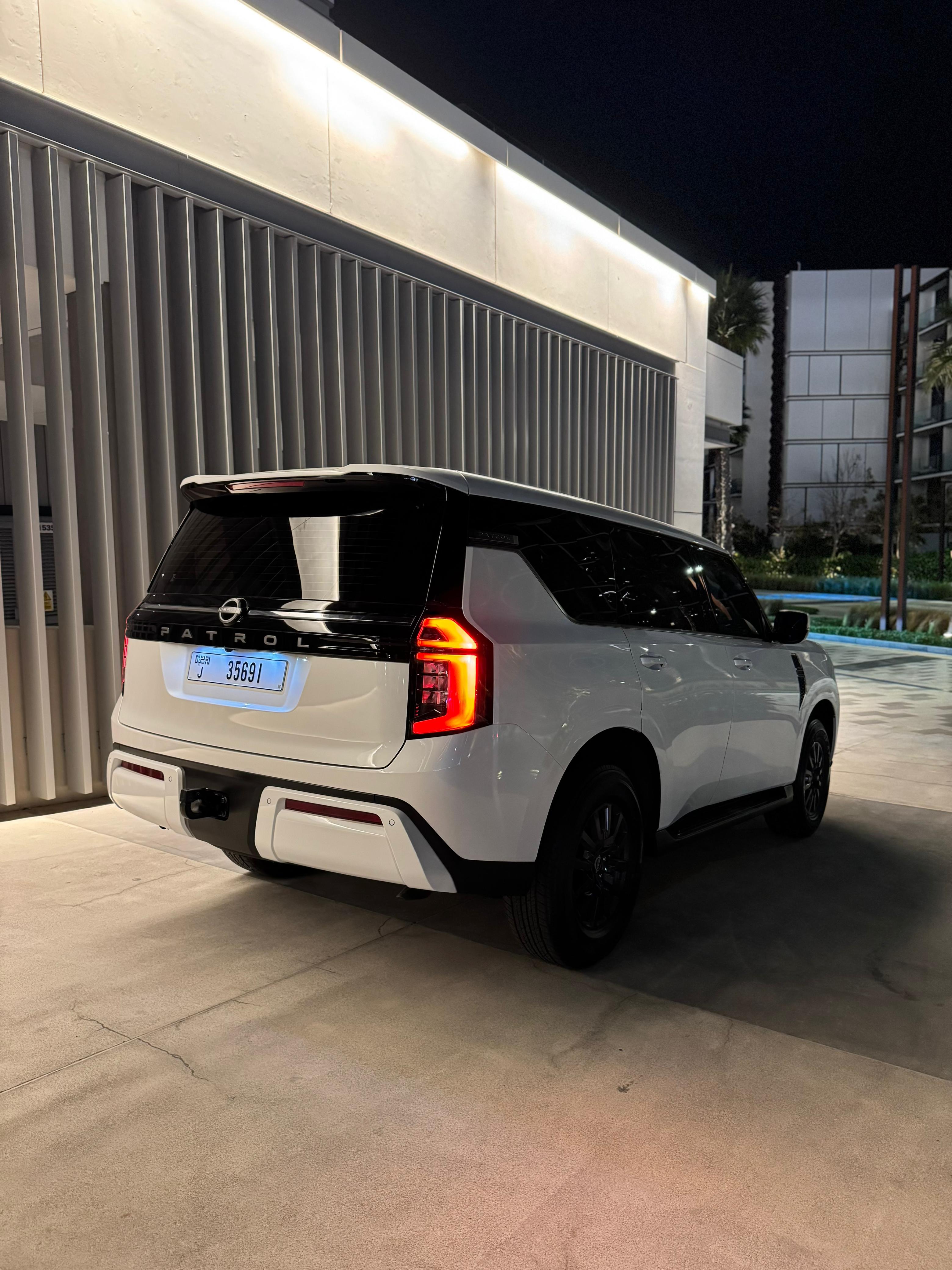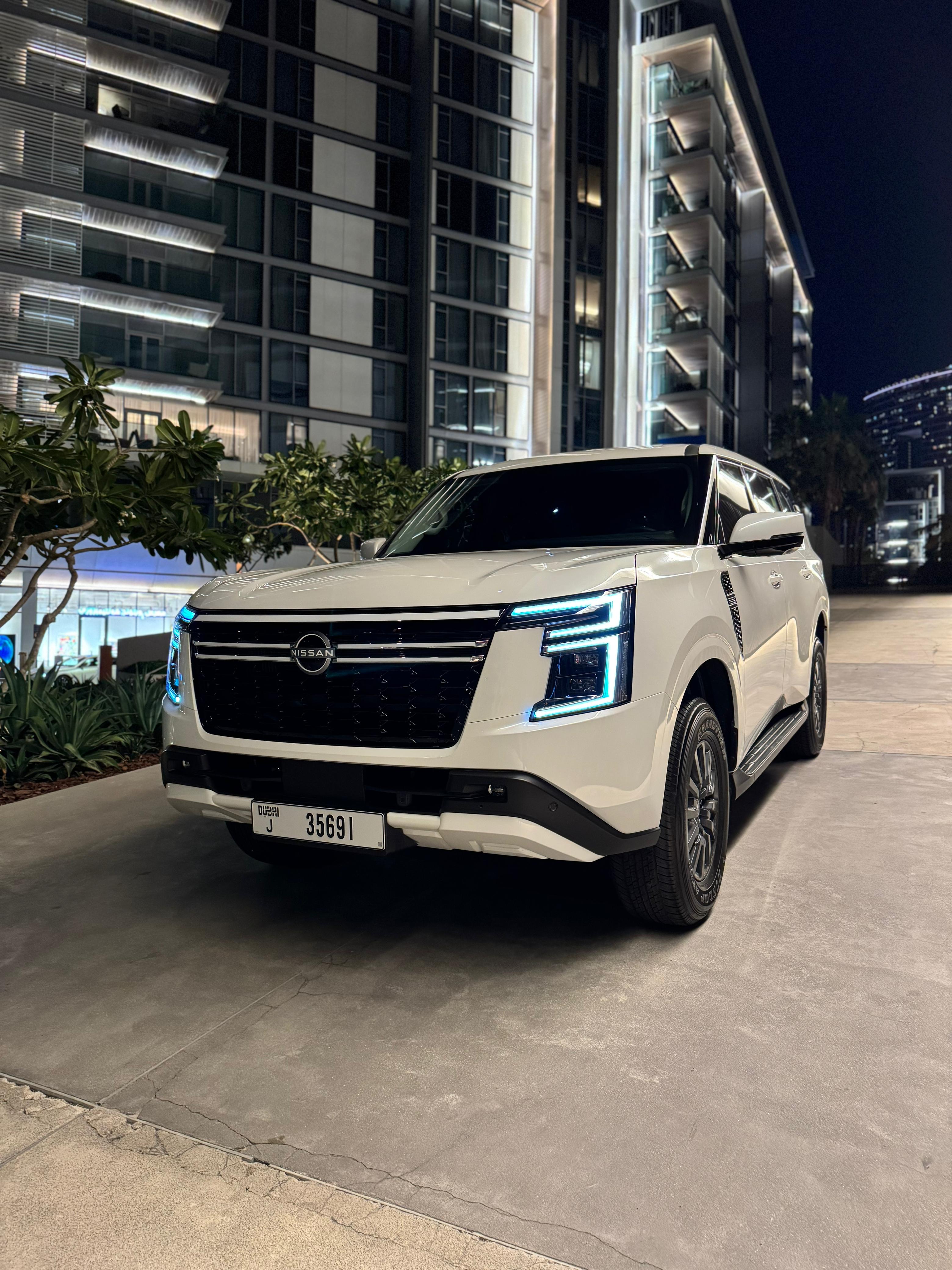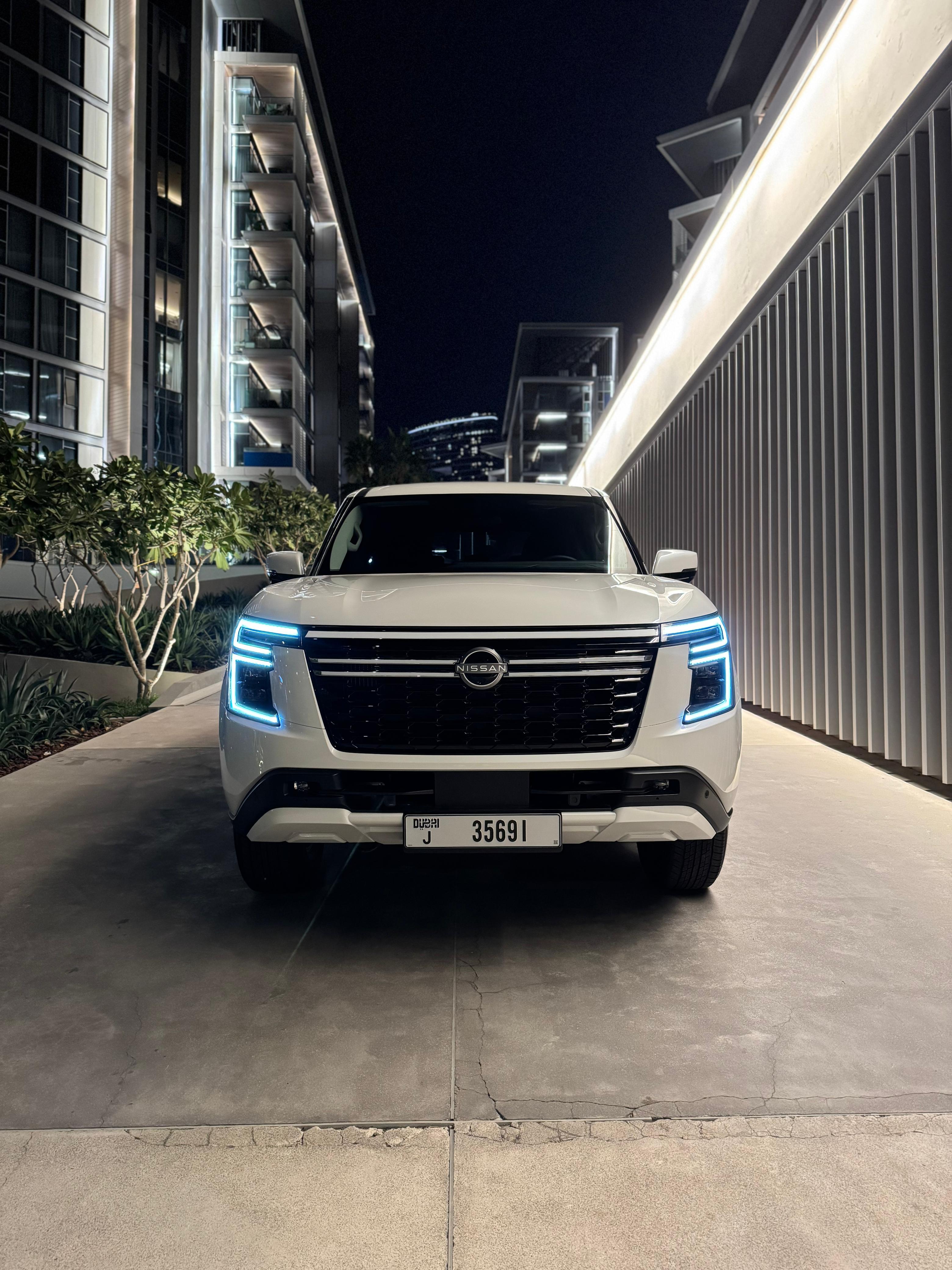 Nissan Patrol Platinum – Model Year 2025 Key Features: 3D Surround Camera Memory Front Seats Why Rent the Nissan Patrol Platinum? Following over a decade of minimal updates, the 2025 Nissan Patrol has undergone a complete redesign aimed at reclaiming its position in the competitive SUV market. The latest model blends rugged performance with modern luxury, offering a wealth of advanced features and technology. The Patrol is available with a powerful 5.6-liter V8 engine, paired with either a 5-speed automatic or a 6-speed manual transmission in the SE trim. For those seeking more power and refinement, the LE trim features a direct-injection 5.6-liter V8 mated to a 7-speed automatic transmission. As a full-size 7-seater SUV, the Patrol Platinum can be equipped with an impressive array of standard and optional features, including: All-wheel drive with low-range gearing Hydraulic independent air suspension Intelligent terrain response system Climate-controlled leather seats Arabic-supported HDD navigation 8-inch WVGA touchscreen Multi-screen rear-seat entertainment 9.3GB internal music hard drive Bluetooth connectivity Power tailgate and power-folding third-row seats Keyless entry and start Adaptive cruise control 20-inch alloy wheels 360° around-view monitor Dual-access cool box for first and second-row passengers For off-road enthusiasts, an advanced Off-Road Monitor provides real-time data such as tire angle, slip, and pressure, along with hill-start assist, hill descent control, and a locking rear differential. Depending on the trim, the Patrol features either a robust off-road bumper or a more refined urban-style front end. In terms of safety, the Patrol includes front and side-curtain airbags, stability control, ABS, and optional advanced systems like lane departure warning, tire pressure monitoring, and automatic emergency braking. Whether you’re exploring rugged terrains or driving through the city in luxury, the Nissan Patrol Platinum 2025 offers the performance, space, and sophistication to handle it all.
